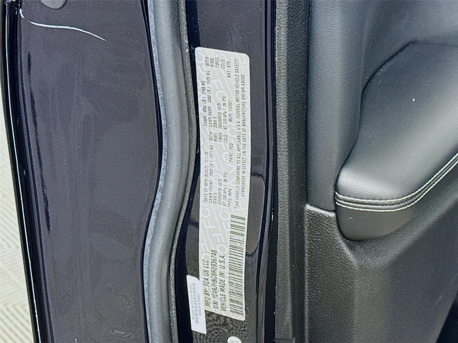 ENGINE: 3.6L V6 24V VVT UPG I W/ESS, TRANSMISSION: 8-SPEED AUTOMATIC 8HP50, QUICK ORDER PACKAGE 23E, WHEELS: 20"" X 8.5"" GLOSS BLACK PAINTED ALUMINUM, TIRES: 265/50R20 A/S PERFORMANCE, DIAMOND BLACK CRYSTAL PEARLCOAT, GLOBAL BLACK, CAPRI LEATHERETTE SEATS, BLACK APPEARANCE PACKAGE, TRAILER TOW PACKAGE, DUAL-PANE PANORAMIC SUNROOF, FRONT LICENSE PLATE BRACKET
