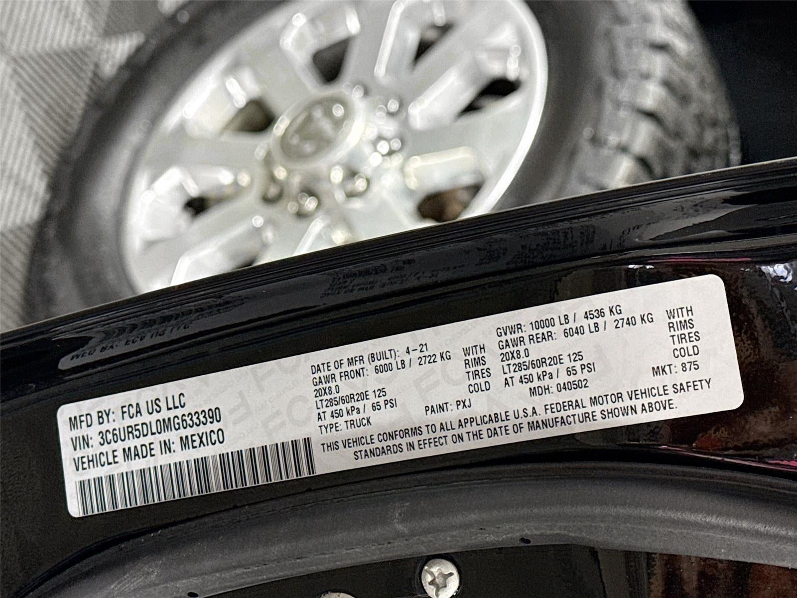 ENGINE: 6.7L I6 CUMMINS TURBO DIESEL, TRANSMISSION: 6-SPEED AUTOMATIC (68RFE), QUICK ORDER PACKAGE 2HZ BIG HORN, 3.73 AXLE RATIO, WHEELS: 20"" X 8.0"" POLISHED ALUMINUM, TIRES: LT285/60R20E OWL ON/OFF ROAD, DIAMOND BLACK CRYSTAL PEARLCOAT, DIESEL GRAY/BLACK, PREMIUM CLOTH BUCKET SEATS, COLD WEATHER GROUP, HEATED SEATS & WHEEL GROUP, HEAVY DUTY SNOW PLOW PREP GROUP, OFF ROAD PACKAGE, TOWING TECHNOLOGY GROUP B, LEVEL 1 EQUIPMENT GROUP, ANTI-SPIN DIFFERENTIAL REAR AXLE, 220 AMP ALTERNATOR, ENGINE BLOCK HEATER, 5TH WHEEL/GOOSENECK TOWING PREP GROUP, TOW HOOKS, FRONT LICENSE PLATE BRACKET, CLEARANCE LAMPS, CTR STOP LAMP W/CARGO VIEW CAMERA, FRONT FOG LAMPS, LED BED LIGHTING, RADIO: UCONNECT 4 W/8.4"" DISPLAY, SIRIUSXM SATELLITE RADIO, REMOTE START SYSTEM, MOPAR FRONT & REAR RUBBER FLOOR MATS, I/P MOUNTED AUXILIARY SWITCHES, PARKSENSE REAR PARK ASSIST SYSTEM, MANUFACTURER'S STATEMENT OF ORIGIN, 115V AUXILIARY FRONT POWER OUTLET
